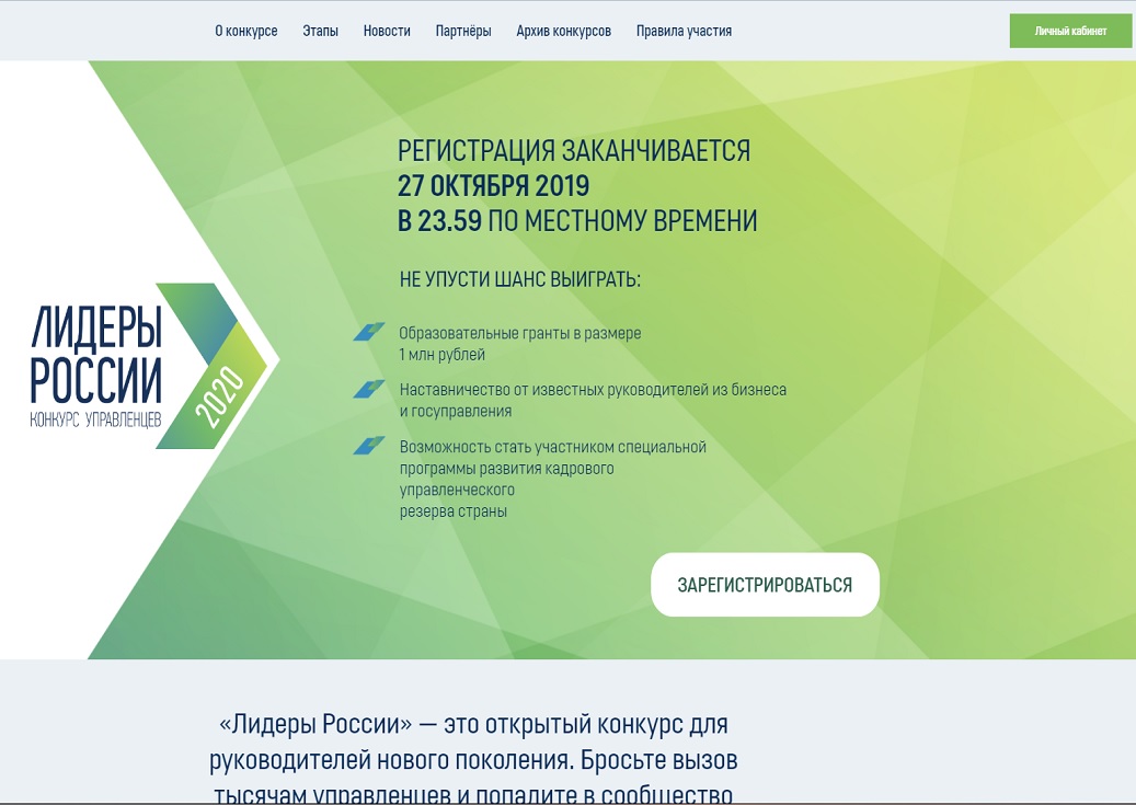 В начале октября текущего года президент РФ Владимир Путин поддержал старт третьего по счету конкурса управленцев «Лидеры России» 2019-2020 годов. До конца приема заявок осталось чуть меньше недели.