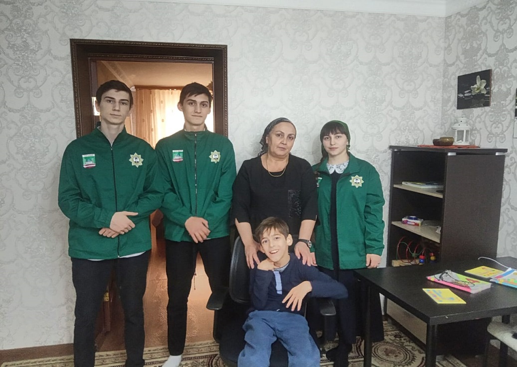 По сложившейся традиции учитель начальных классов МБОУ "Гимназия № 4" г. Грозного Дудаева Таиса Ахмедовна с патриотическим отрядом "Юные Кадыровцы", в рамках акции "Так просто быть рядом..", посвященной Международному Дню инвалидов, посетила ученика 5 "Е" класса Эдисултанова Магомеда Баудиновича, который обучается на дому по состоянию здоровья.