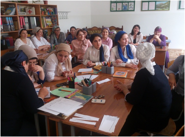 С августа месяца включились в работу стажировочной площадки уже учителя начальных классов и провели 4 обучающих семинара для педагогов гимназии: «Понятийный аппарат и новеллы ФЗ №273 «Об образовании в РФ» подготовила и провела учитель начальных классов Исаева Таус Вахаевна. Тему следующего семинара «ОАШ – знакомство» раскрыла Дудаева Таиса Ахматсолетовна. 09.09.2014г. состоялся семинар по теме «Современные образовательные технологии».Подготовили и провели семинар Эжаева Роза Идрисовна, заслуженный учитель ЧР и Ганатова Зарема Микаиловна, молодой тьютор.