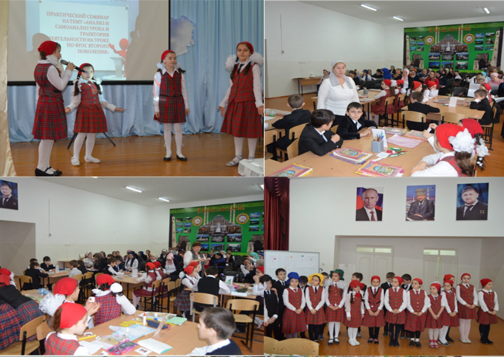 В рамках семинарского занятия был дан урок литературного чтения в 3-м классе по теме: «Суровые законы жизни леса». В. Бианки «По следам» (учитель Эжаева Роза Идрисовна) и урок-проект по окружающему миру по теме: «Земля – наш общий дом» (учитель Исаева Таус Вахаевна). Учителя начальных классов, показавшие уроки, - Эжаева Р.И. и Исаева Т.В. – дали развернутый самоанализ уроков. С анализом урока литературного чтения выступила учитель начальных классов Ганатова Зарема Микаиловна; урок-проект по окружающему миру проанализировала заместитель директора по УВР Гинаева Малика Ильясовна.