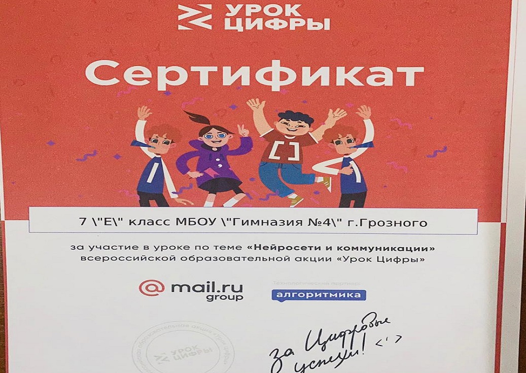 Сегодня в МБОУ "Гимназия №4" г.Грозного прошел "Урок цифры".