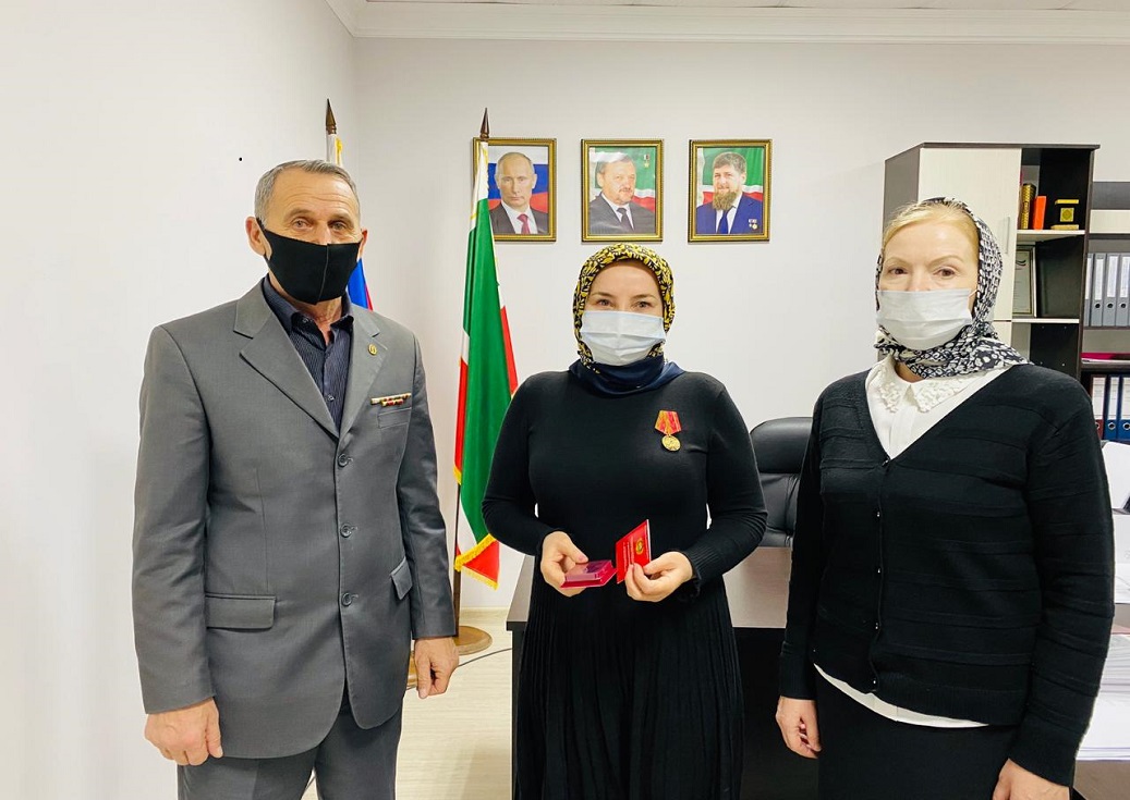 В МБОУ «Гимназия № 4» г.Грозного состоялось торжественное награждение. За помощь и содействие ветеранскому движению ГСВГ, а также за участие реализации проектов, нацеленных на патриотическое и духовно- нравственное воспитание молодого поколения, награждена памятной медалью 75 лет Великой Победы директор гимназии Мусаева Марьям Абуезитовна.