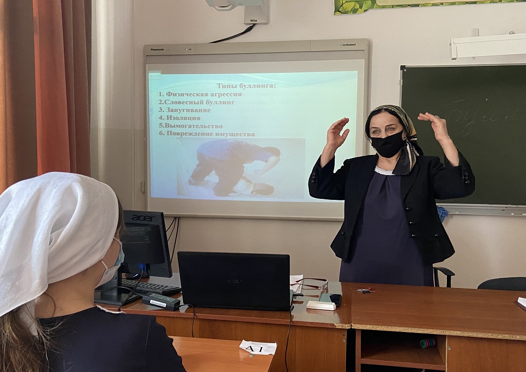 Педагог-психолог Бурсагова Т.Х. рассказала о том, что все чаще наблюдается жестокость во взаимоотношении детей и подростков; унижение и насмешки, которые становятся причиной психоэмоциональных нарушений у детей; о том, что для жертв травли характерна тревожность, повышенная чувствительность и заниженная самооценка.