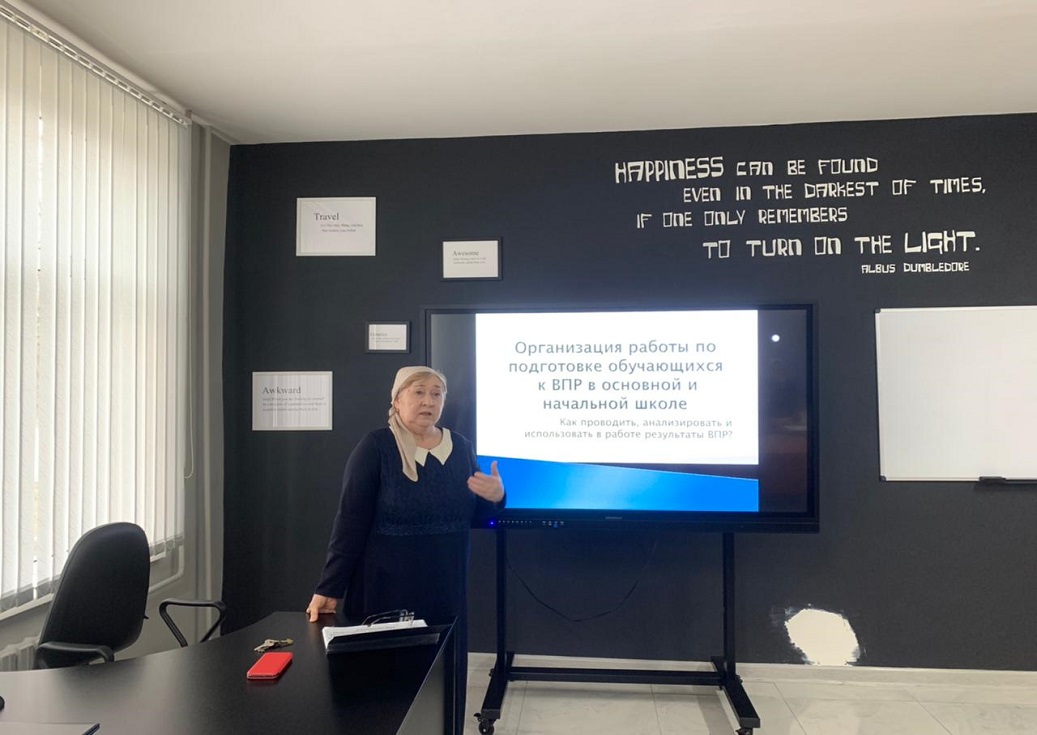 Сегодня в МБОУ «Гимназия №4» г. Грозного заместителем директора по УВРНШ Эжаевой Р.И. проведен семинар на тему: «Организация работы обучающихся по подготовке к ВПР в начальной и основной школе».