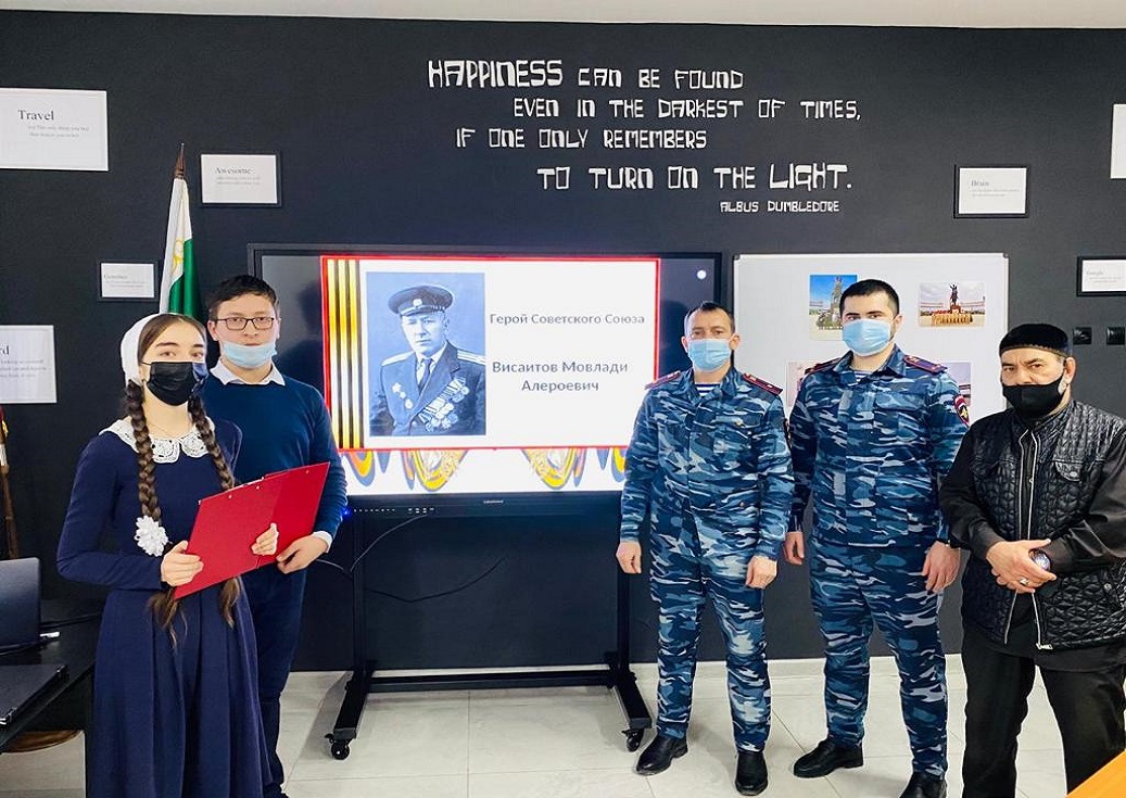 Школьникам рассказали о героических подвигах командира кавалерийского полка, гвардии полковника, Героя Советского Союза - Мовлида Алероевича Висаитова, который прошел всю Великую Отечественную войну, имел боевые ранения, получил множество наград, а также был единственным человеком в Советской Армии, получившим высшую награду США- орден «Легион почета».