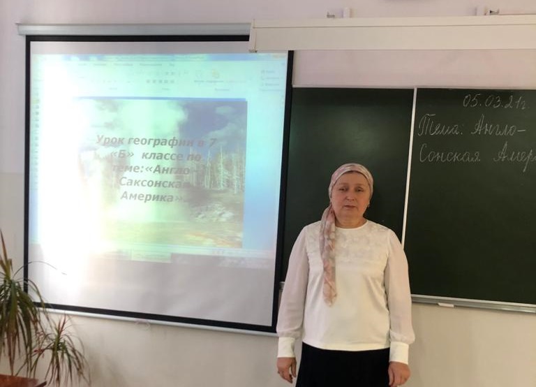 5 марта 2020г в МБОУ «Гимназия №4» г.Грозного был проведен открытый урок в 7 «Б» классе по географии на тему: «Англо-Саксонская Америка». Урок провела учитель географии Гичиева Иман Аминовна.