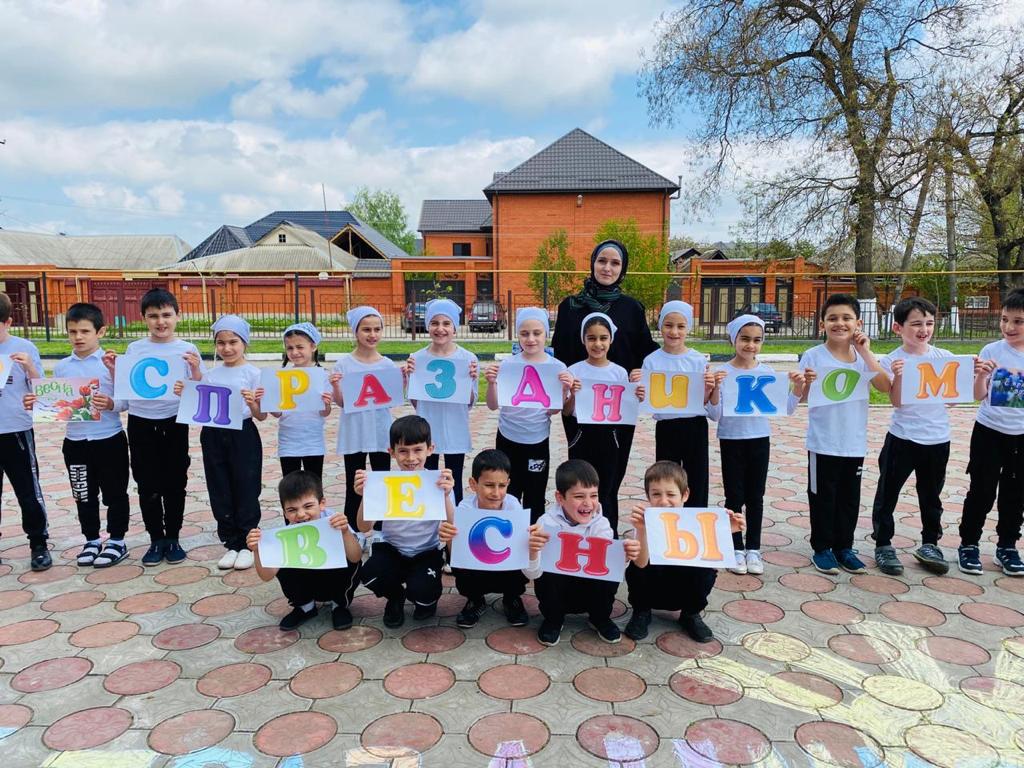 Сегодня в МБОУ «Гимназия №4» г.Грозного прошёл конкурс рисунков на асфальте в честь празднования Дня весны и труда.