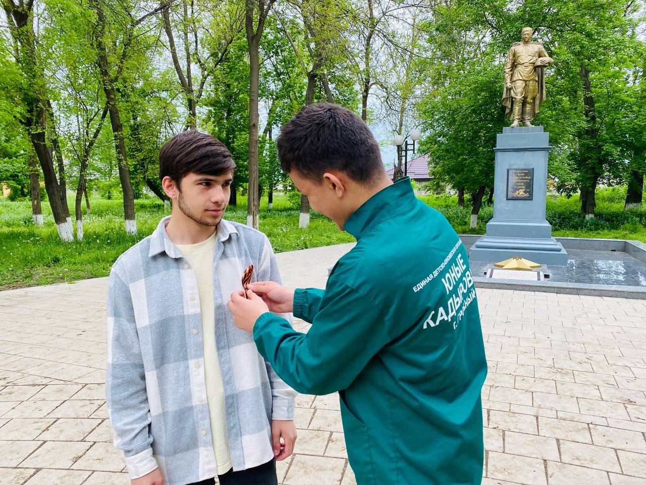 Юные Кадыровцы и активисты РДШ нашей гимназии приняли активное участие в этой акции. «Георгиевская ленточка» - символ не сломленного духом народа, который боролся, победил фашизм в Великой Отечественной войне. Это символ уважения к ветеранам, дань памяти павшим на поле боя, благодарность людям, отдавшим все для фронта.