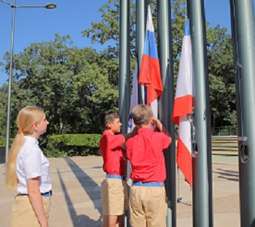 В российских школах с 1 сентября текущего года будет проходить еженедельное поднятие Государственного флага России. Поднятие, как правило, осуществляется в начале учебной недели, спуск – в конце учебной недели. Стандартом церемонии предусмотрены подготовка знаменных групп, непосредственно церемония поднятия (спуска) флага, места размещения государственных символов.