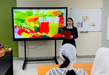 Мурадова Х., обучающаяся МБОУ «Гимназия № 4» г. Грозного, провела для учащихся гимназии и их родителей показательный урок в рамках акции «Здоровое питание в школе и дома».
