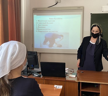 Педагог-психолог Бурсагова Т.Х. рассказала о том, что все чаще наблюдается жестокость во взаимоотношении детей и подростков; унижение и насмешки, которые становятся причиной психоэмоциональных нарушений у детей; о том, что для жертв травли характерна тревожность, повышенная чувствительность и заниженная самооценка.