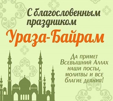 Поздравляем с праздником Ураза Байрам! В светлый праздник Ураза Байрам примите наши искренние поздравления и пожелания всего доброго, радостного и красивого. Пусть мир царит в семье, пусть все родные будут здоровы, пусть на столе всегда будет праздник, пусть Ваши руки делают добрые дела, пусть Аллахом будут услышаны все молитвы.