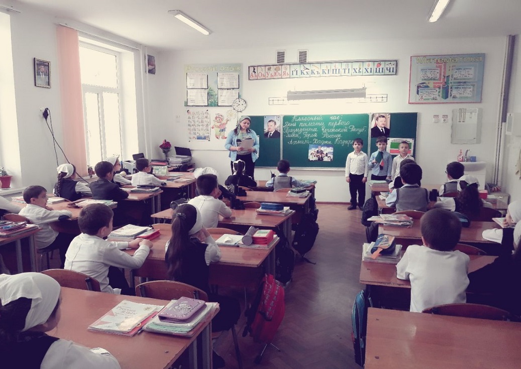 10 мая в МБОУ "Гимназия № 4" г.Грозного, под руководством учительницы начальных классов Жабраиловой Жанны Алиевны, прошел классный час в 1 классе, посвященный памяти первого Президента Чеченской Республики Ахмата-Хаджи Кадырова.