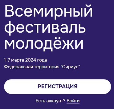 Согласно Указа Президента Российской Федерации В. В. Путина Всемирный фестиваль молодёжи пройдет в 2024 году в целях развития международного молодежного сотрудничества c 1 по 7 марта 2024 года на федеральной территории «Сириус», где участников ждет насыщенная и яркая программа.