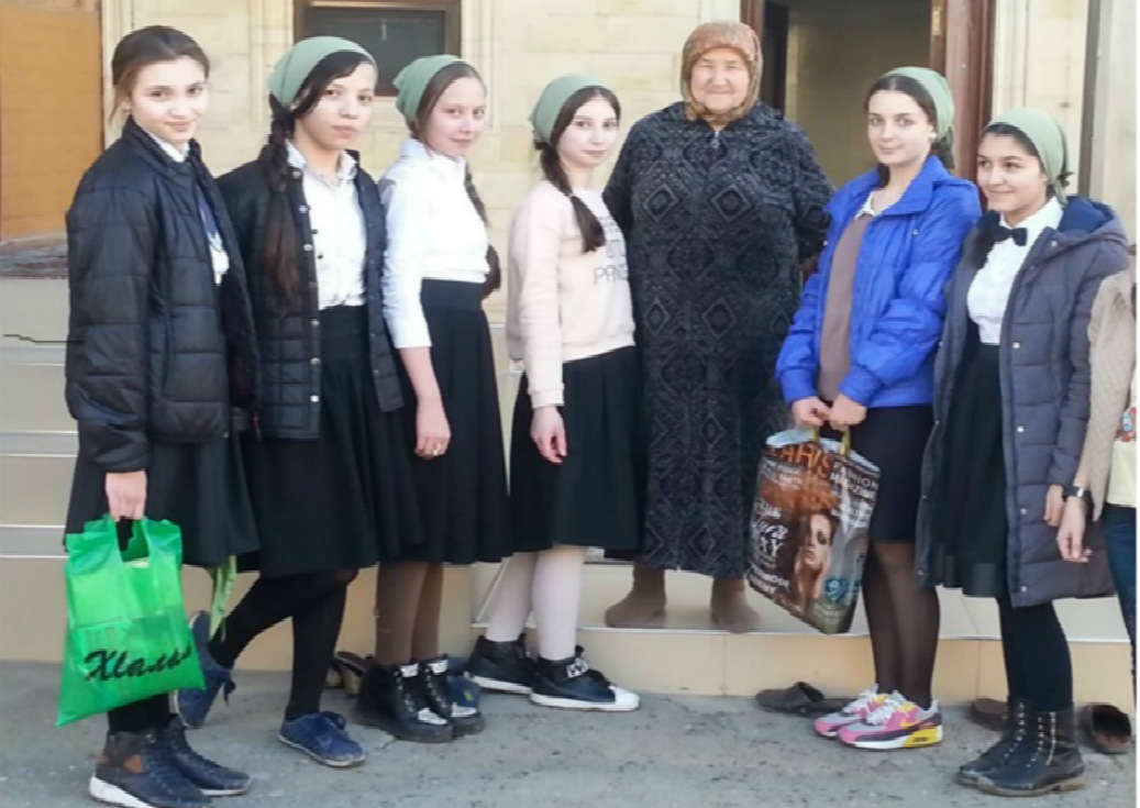 В рамках благотворительной акции «С праздником, бабушка!» активисты отряда «Юные Кадыровцы» навестили пожилых жительниц микрорайона и поздравили их со светлым праздником, пожелав долгой и счастливой жизни.