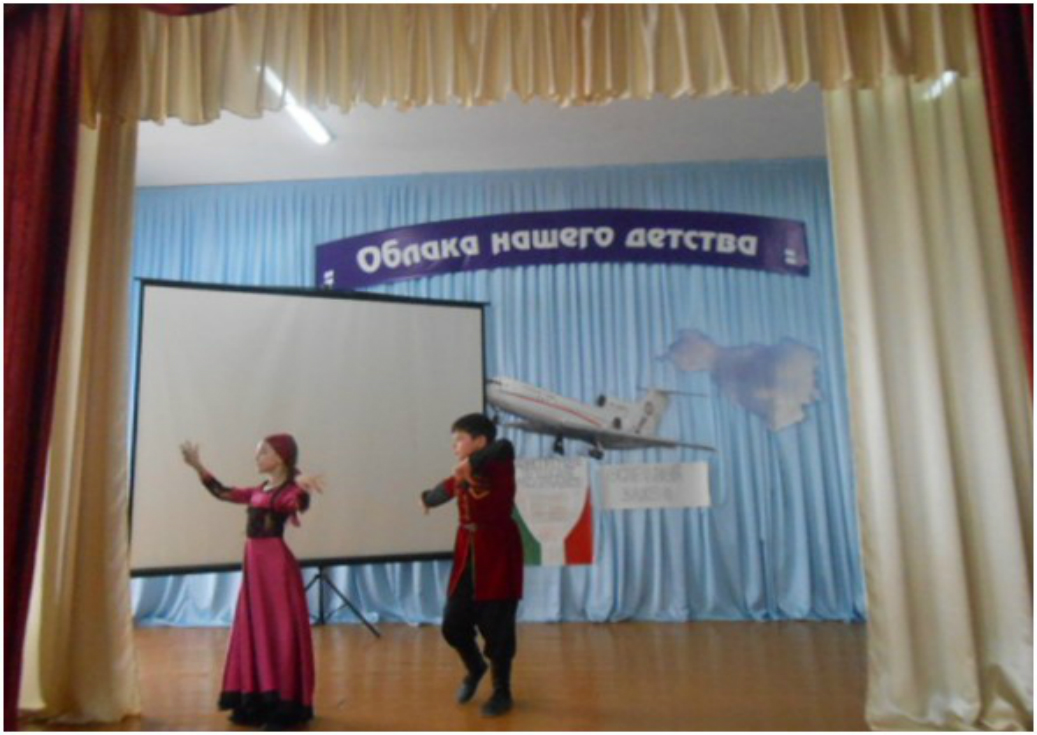 Праздничная программа началась с исполнения гимнов РФ и Чеченской Республики, она состояла из ярких постановок, инсценированных песен, сценок и очень понравилась присутствующим, которые не стеснялись выражать свой восторг бурными аплодисментами.