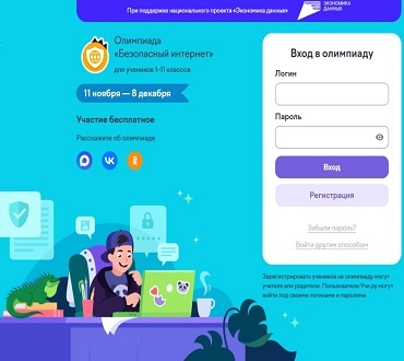 С 11 ноября по 8 декабря пройдет Всероссийская онлайн-олимпиада «Безопасный интернет», направленная на развитие у школьников навыков безопасного поведения в сети и ответственного использования современных технологий. К участию приглашаются ученики 1–11 классов со всей России. Олимпиада организована АНО «Национальные приоритеты» при поддержке Минцифры России, национального проекта «Экономика данных» и образовательной платформой Учи.ру.