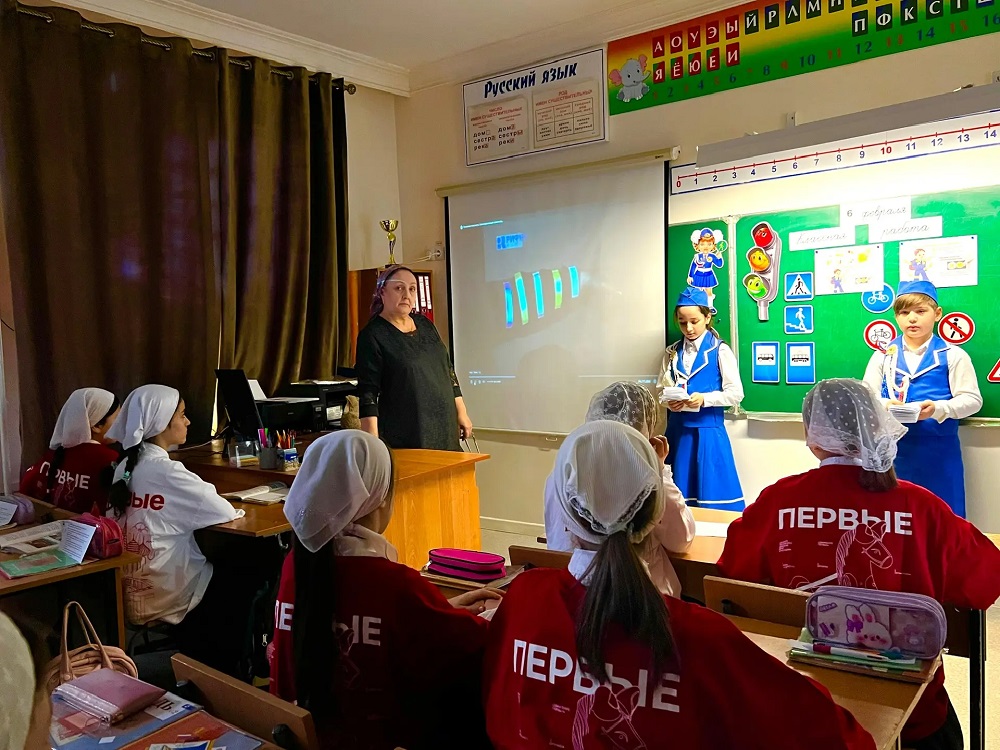 Отряд ЮИД вместе с активистами "Движение Первых" МБОУ "Гимназия № 4" г. Грозного подготовили яркое и запоминающееся выступление, чтобы напомнить о важности соблюдения правил дорожного движения. Провела Дудаева Т.А.