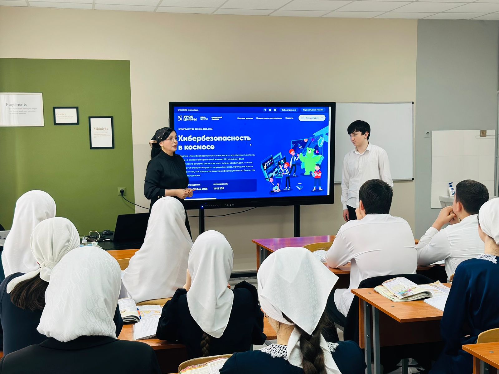2 февраля в МБОУ "Гимназия № 4" г. Грозного прошёл Урок Цифры по теме "Кибербезопасность в космосе".