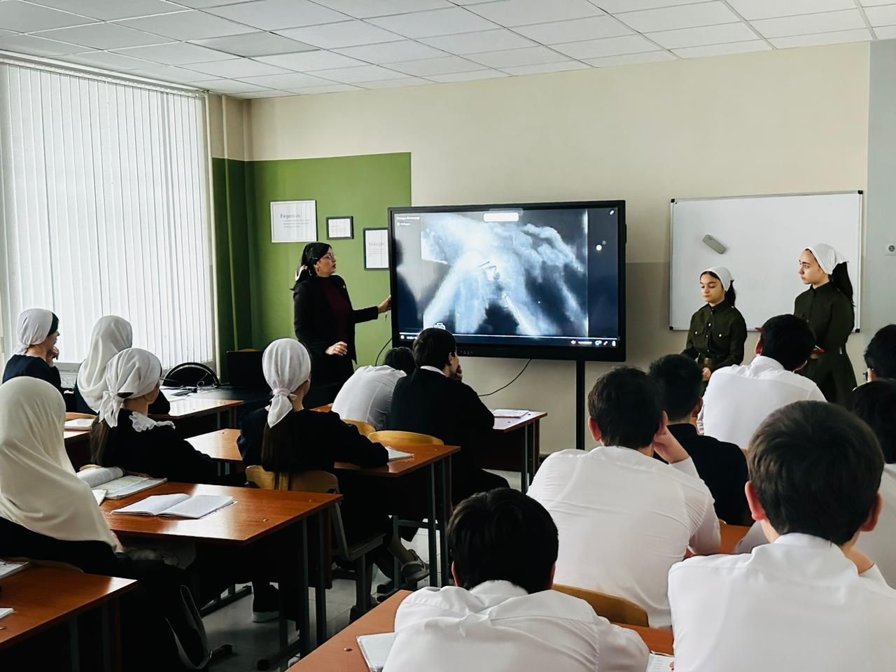 Заместитель директора по воспитательной работе Мусаева М.М. провела для учащихся МБОУ "Гимназия № 4" г. Грозного классный час (урок мужества), посвящённый 27 января — Дню полного освобождения Ленинграда от фашистской блокады в 1944 году.
