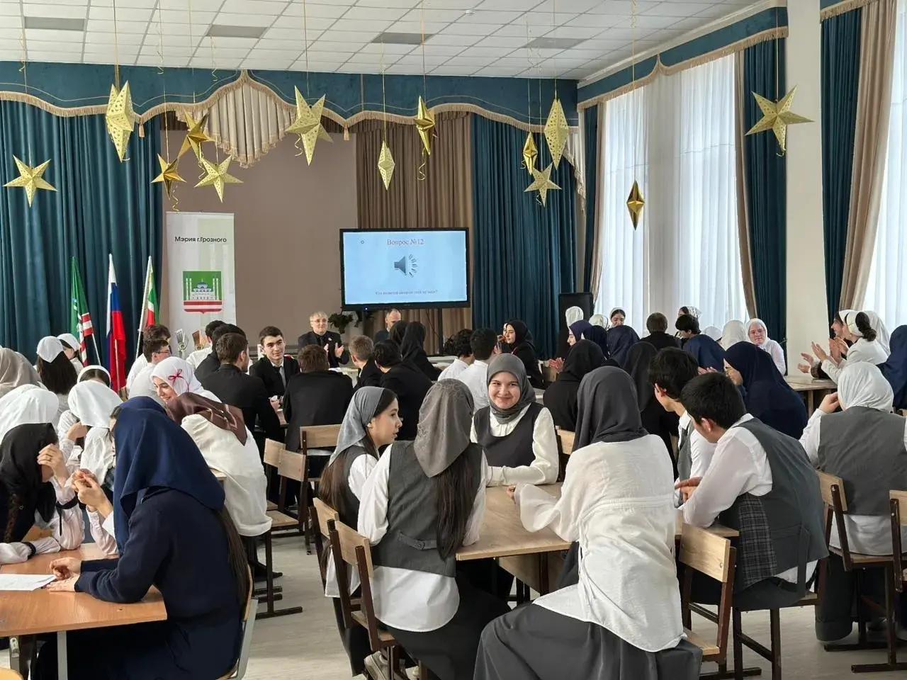 На базе школы МБОУ «СОШ № 37» г. Грозного прошел первый муниципальный этап третьего чемпионата Чеченской Республики «ХААРХЬАМА» по интеллектуальной игре «Что? Где? Когда?» на «Кубок Департамента образования Мэрии г. Грозного» среди обучающихся 9–11 классов. В чемпионате приняли участие наши обучающиеся, на котором заняли почетное 1 место.