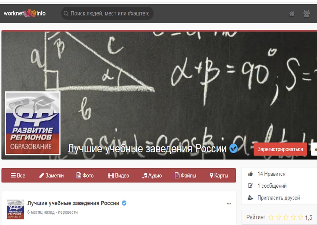Вступить в Сводную рабочую Группу по вопросам развития всех видов учебных заведений России можно здесь https://worknet-info.ru/obrazovanievrossii. Информацию в Группе «Образование в России» https://worknet-info.ru/obrazovanievrossii могут публиковать дошкольные; общеобразовательные (начального общего, основного общего, среднего (полного) общего образования); учреждения начального профессионального, среднего профессионального, высшего профессионального и послевузовского профессионального образования; учреждения дополнительного образования взрослых; специальные (коррекционные) для обучающихся, воспитанников с отклонениями в развитии; учреждения для детей-сирот и детей, оставшихся без попечения родителей (законных представителей); учреждения дополнительного образования детей и другие учреждения, осуществляющие образовательный процесс.
