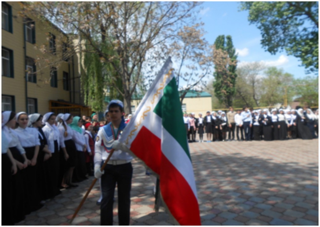 8.05.13г. 11 00 проведена торжественная линейка посвященная Дню памяти и скорби с минутой молчания, где были приняты в ряды патриотического отряда «Юные Кадыровцы» новые члены отряда.